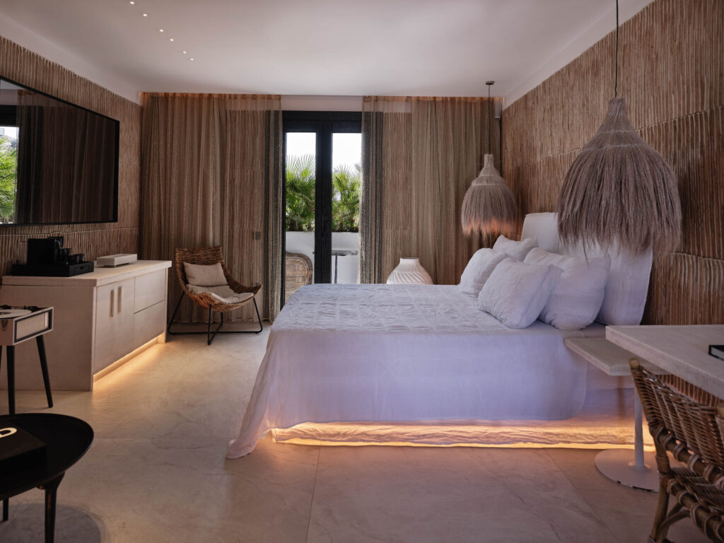 Thoughtfully designed to meet your every need, our entry-level Nos guest rooms raise the bar for hotel rooms in Mykonos. The spacious, unapologetically stylish interiors come with a host of luxury amenities and your choice of private balcony or private terrace with seawater plunge pool, offering a luxurious experience of Mykonos accommodation.